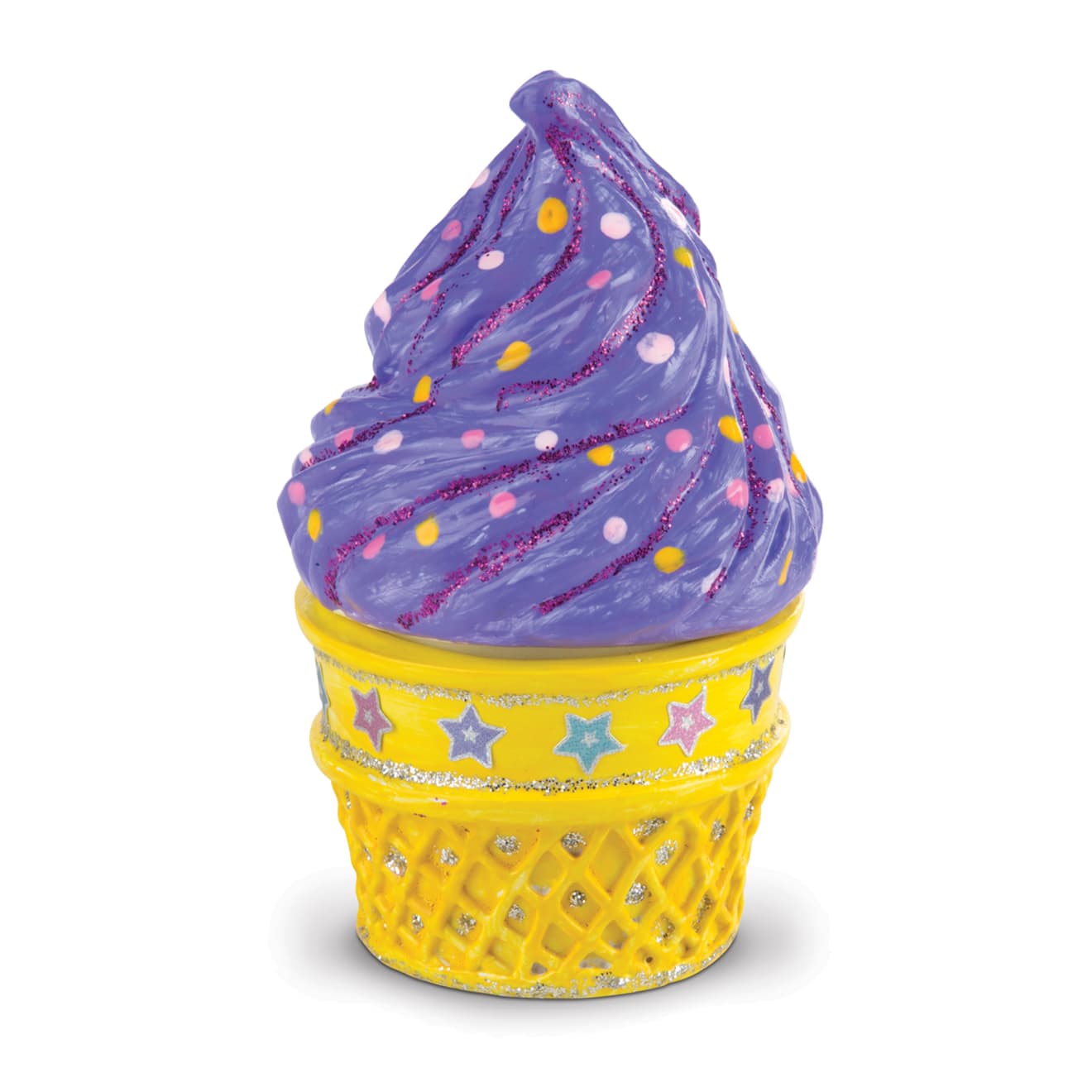 With this engaging set. kids can add their own unique personal touches to decorate 3 extra-sweet crafts! The swirly ice cream cone and cherry-topped cupcake boxes are irresistible places to store treasures. and the layer-cake bank lets you save your change in style. Also includes 75 foil stickers. 6 pots of paint. 3 paintbrushes. and 3 glitter glues to make these crafts. inspired by you and your imagination!