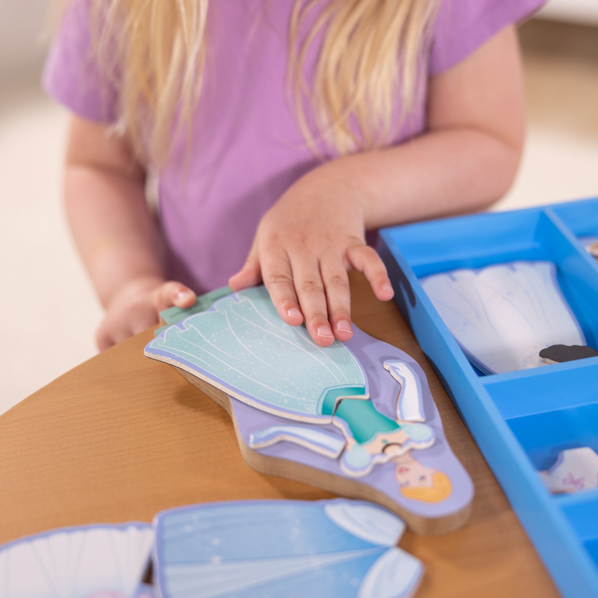 Mix and match 30 clothing and accessory pieces to tell the tale of Disney Princess Cinderella ?C or create your own fashion story! The wooden magnetic Cinderella doll fits into a wooden stand for pretend play. With sturdy wooden pieces in coordinating designs. there are countless combinations to create and tales to tell. The doll. stand. and pieces all store in a sturdy wooden tray. This unique dress-up doll helps kids three and older develop hand-eye coordination and fine motor. counting. and sorting skills. and encourages creative expression and imaginative play.For more thrilling role play. look for sets with other Disney characters. Like Minnie. Daisy & princess Ariel. or bring home the Melissa and Doug Simmer & Stir Stovetop Play Set with Water Wow!? Color Changing Play Food to create the ultimate pretend play world!For 35+ years. Melissa and Doug has crafted imaginative preschool toys and durable wooden toys built to nurture childhood wonder. with everything from a life-sized grocery store playset to a play kitchen playset and play food to serve plush toys & puppets. to costumes. arts & crafts. and road trip activities for kids. It’s the kind of kid-powered play that builds independence and confidence!