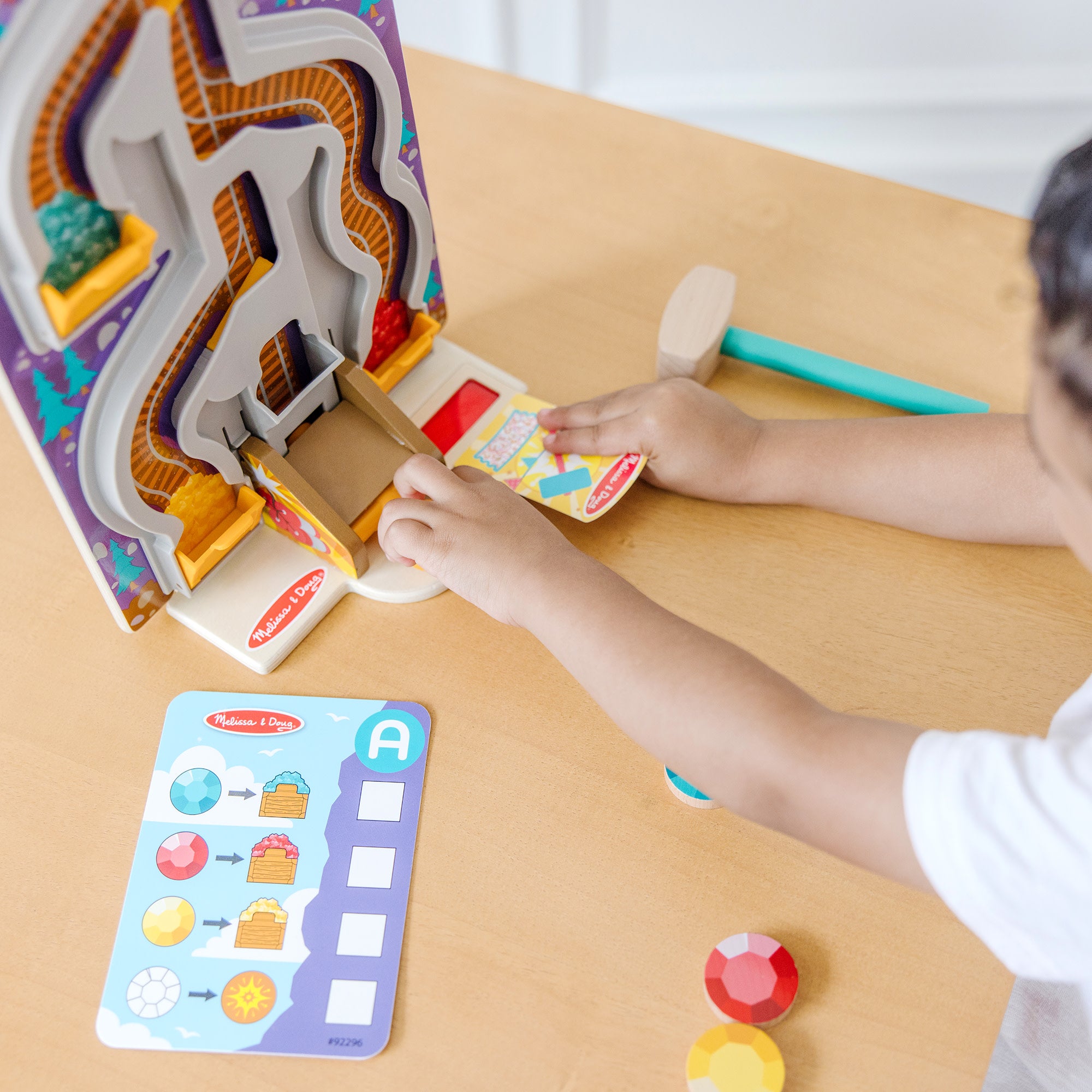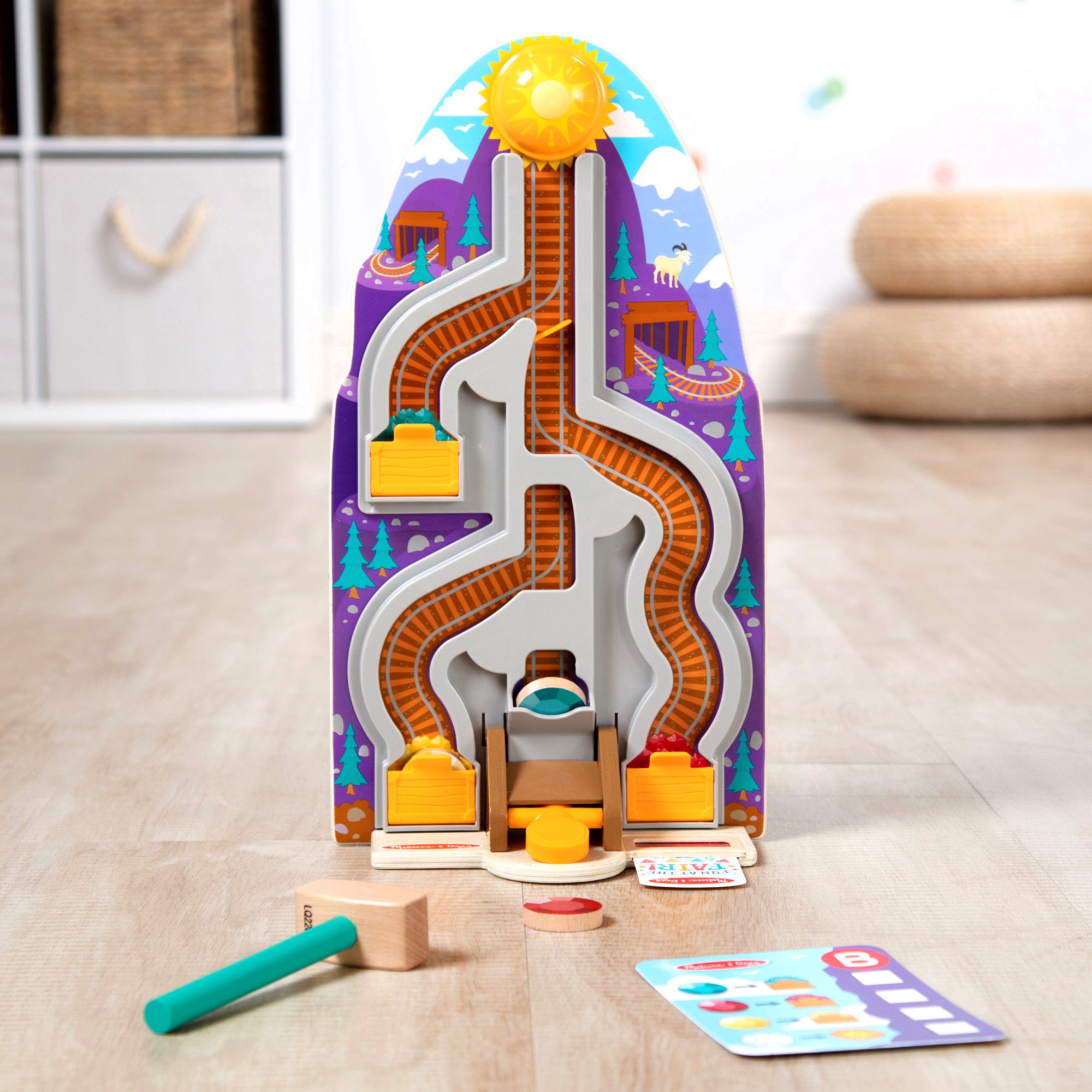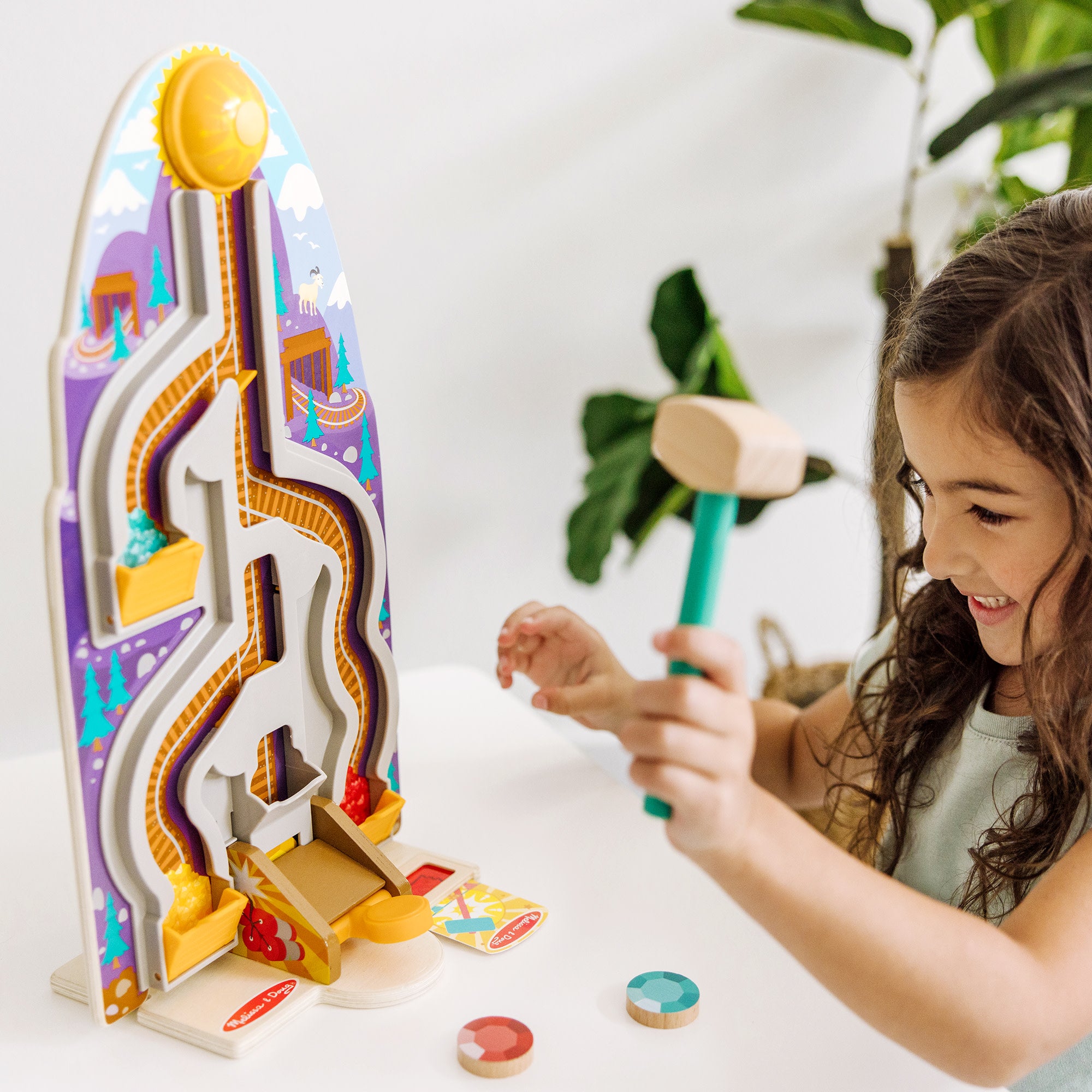 Step right up and turn any day into Fair Day! The Melissa & Doug Fun at the Fair!? Ring the Bell is a wooden tabletop version of a classic fair game that lets kids use both strength and finesse to launch three wooden jewels along tracks and into the mine carts. Start game play by inserting the secret-reveal player card ticket in the base. Hit the launch pad hard enough with the wooden mallet and the jewel will go all the way to the top and ring the bell! But. it takes different amounts of force to have the jewels travel on different tracks and land in carts with matching-colored treasures. Designed to amuse. surprise. and challenge kids three and older to keep them laughing and learning through play. Ring the Bell is an engaging. hands-on way to introduce colors. counting. and cause-and-effect. and to encourage fine and gross motor skills. From games of skill and chance to innovative carnival-inspired play sets. the Melissa & Doug Fun at the Fair!? collection brings home all the fun of a day at the fair! This product is certified by the Forest Stewardship Council. FSC certification ensures that products come from responsibly managed forests that provide environmental. social. and economic benefits. and that forests are protected for future generations. Please note that FSC certification applies to new inventory only (FSC C156584)