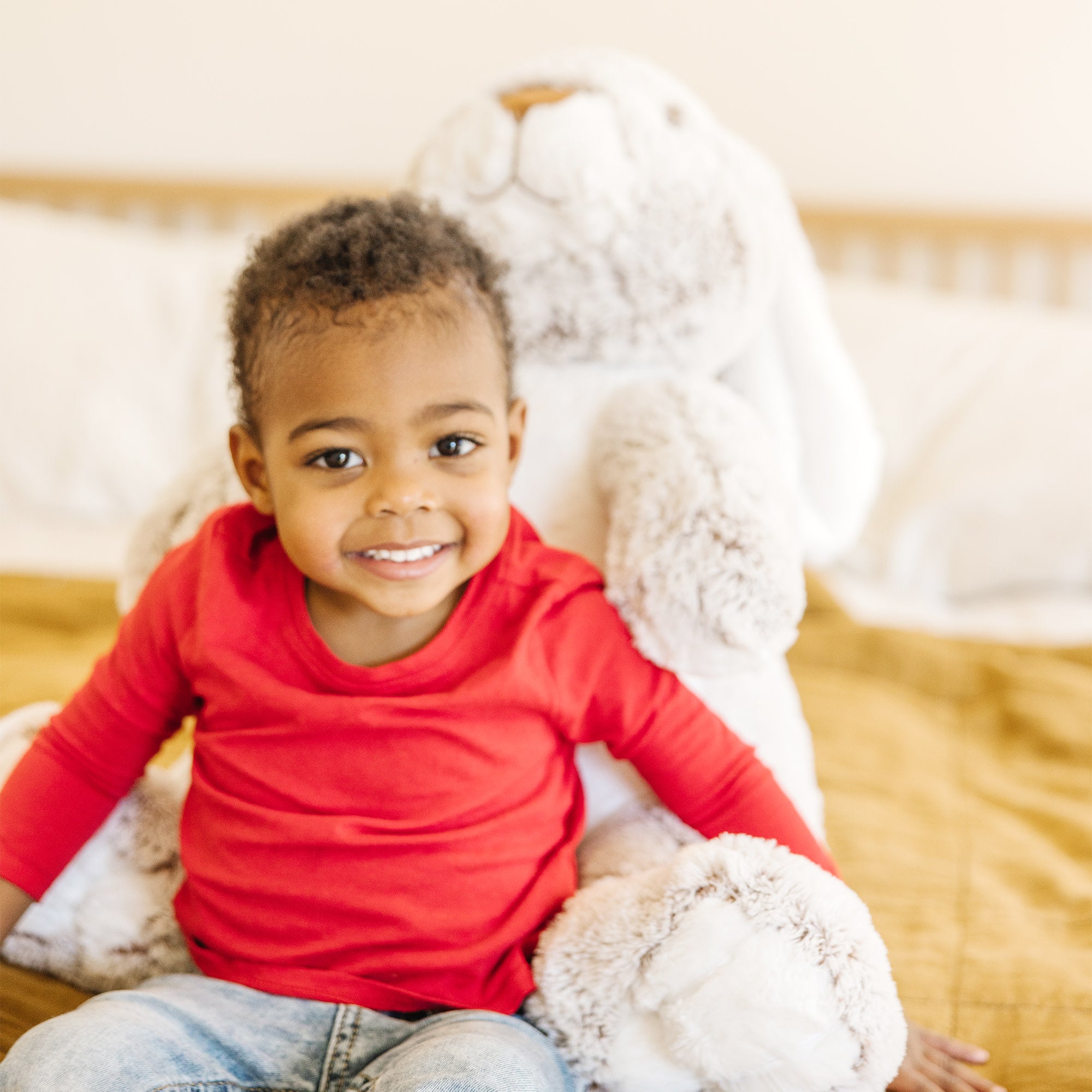 The adorably oversized lop-eared Jumbo Burrow Bunny will hop happily into any child’s life! Extra-soft and squishy plush and fill make this bunny perfect for petting and hugging. Durably made from top-quality materials. it will last through years of cuddles. The two-toned beige bunny rabbit sits about 21 inches tall and 20 inches wide. With a sweet face. long ears. and big. floppy feet. it’s ideal for kids’ rooms. from nurseries to college dorms!