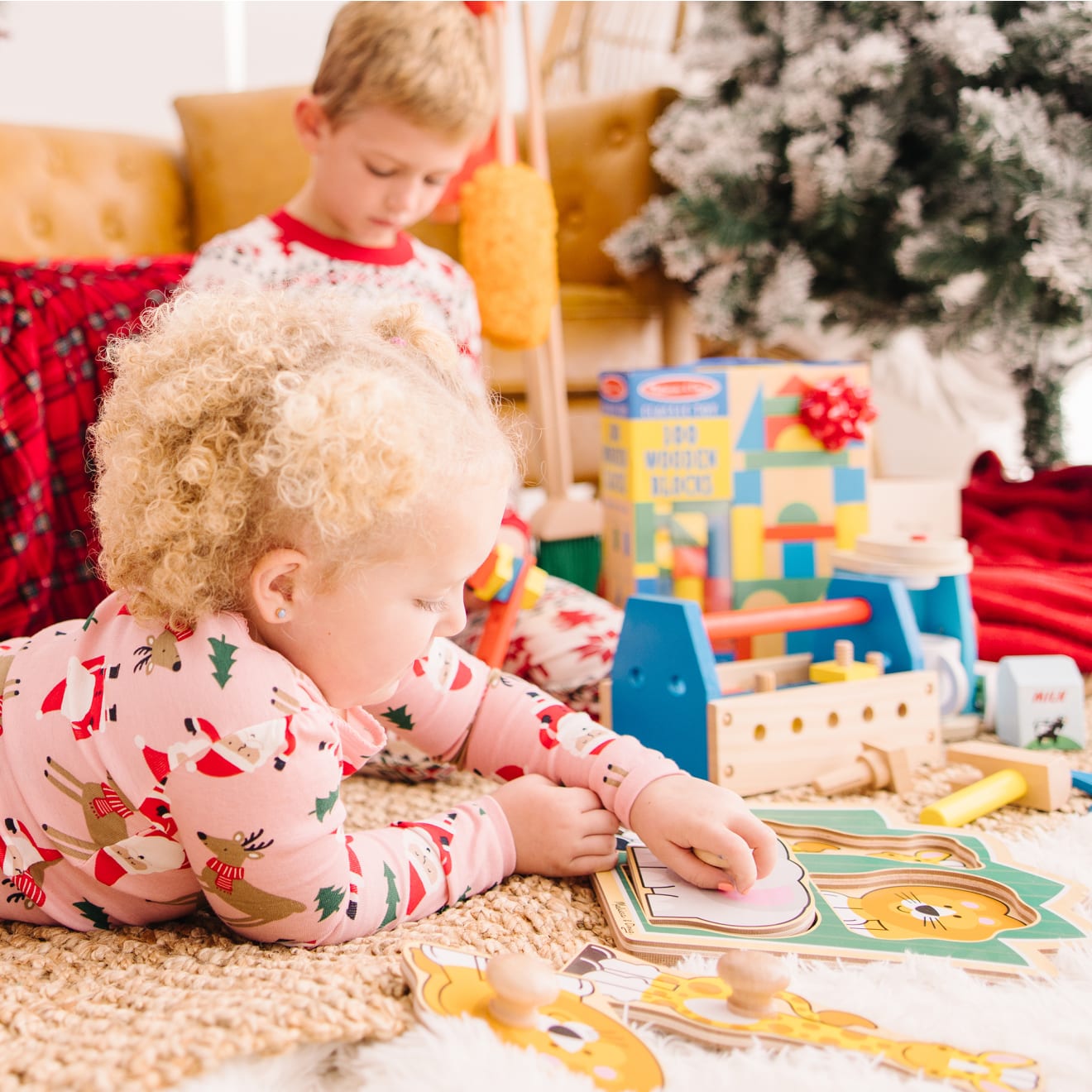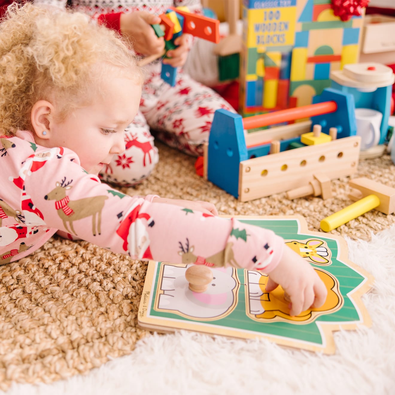 Standing against a lush green background. a lion. an elephant and a giraffe are waiting to play. Extra thick wooden puzzle includes three pieces. with jumbo wooden knobs for easy grasping. Full-color. matching pictures appear underneath each piece. Encourage hand-eye. fine motor and visual perception skills.