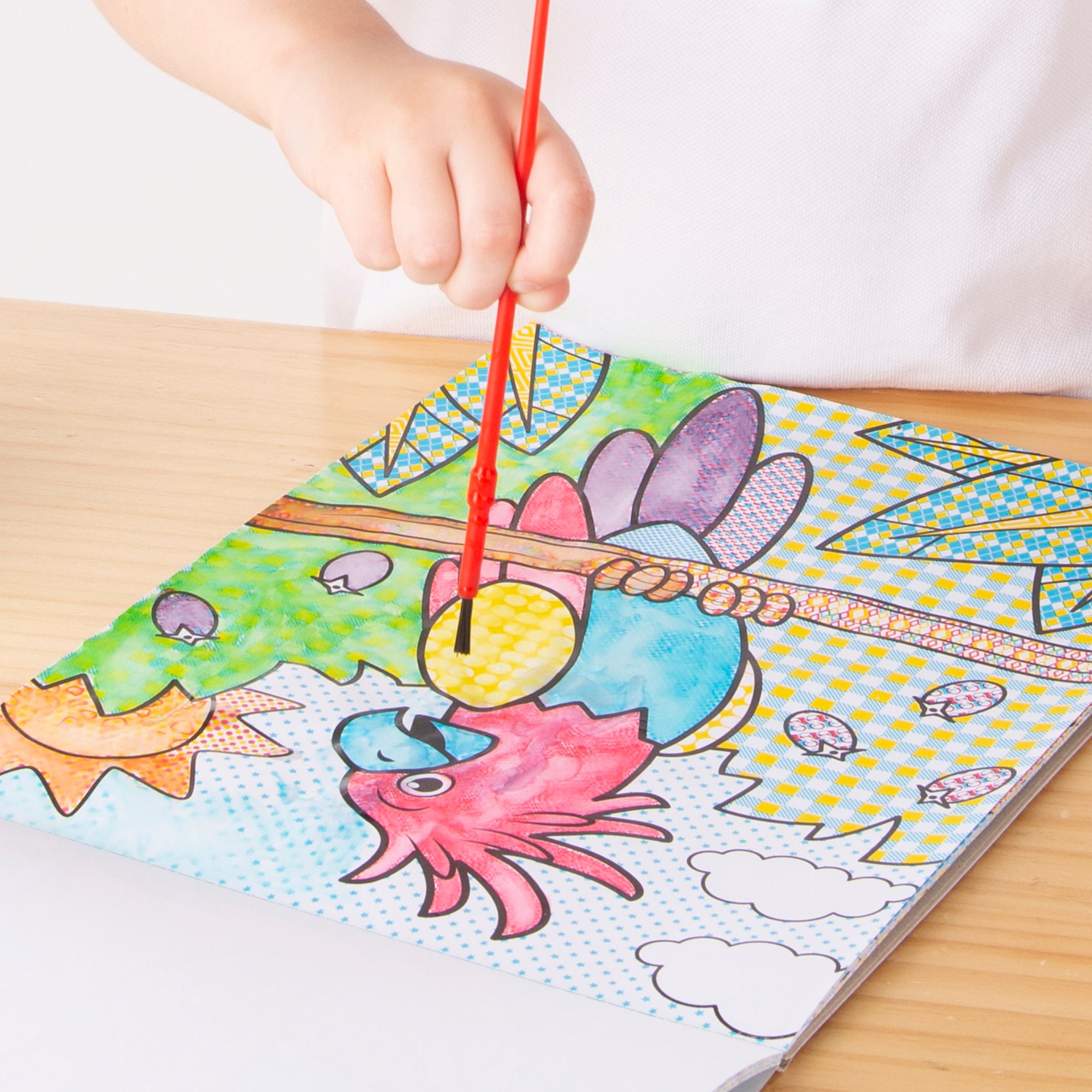 This special all-inclusive art pad is perfect for the beginning painter! With a cup of water and the included paintbrush. kids can get instant rewards–with no messy paint spills! Simply remove a page from the pad. dip the paintbrush into a container of water. and use the damp brush to blend a patterned area. As kids brush. the colors in the pattern will blend together to create a single paint color! Includes 24 cool scenes showcasing kid-favorite animals. This product is certified by the Forest Stewardship Council. FSC certification ensures that products come from responsibly managed forests that provide environmental. social. and economic benefits. and that forests are protected for future generations. Please note that FSC certification applies to new inventory only (FSC C156584).