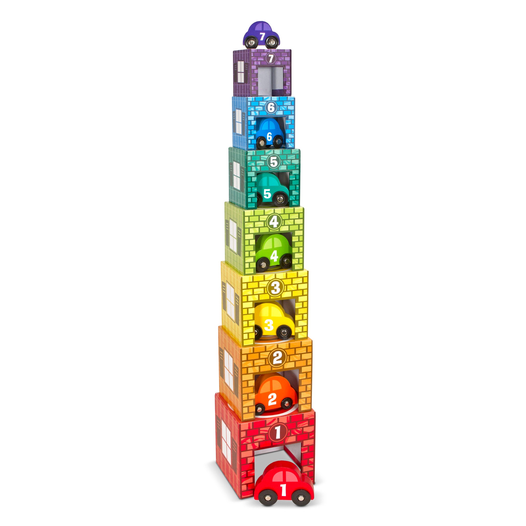 Zoom the wooden cars. build with the blocks. match the cars to their garages–there are lots of ways to play and learn with this versatile learning set! The seven graduated garages (all decorated with objects to count and colors to match) can be arranged to make a colorful town. or stacked to make a tower tall with learning opportunities. Then nest them for neat and easy storage! Best of all. each one matches one of seven stackable wooden cars by size. color. and number. opening up endless opportunities for stacking. counting. hide-and-seek. mix-and-match. imaginative play. This product is certified by the Forest Stewardship Council. FSC certification ensures that products come from responsibly managed forests that provide environmental. social. and economic benefits. and that forests are protected for future generations. Please note that FSC certification applies to new inventory only (FSC C156584)