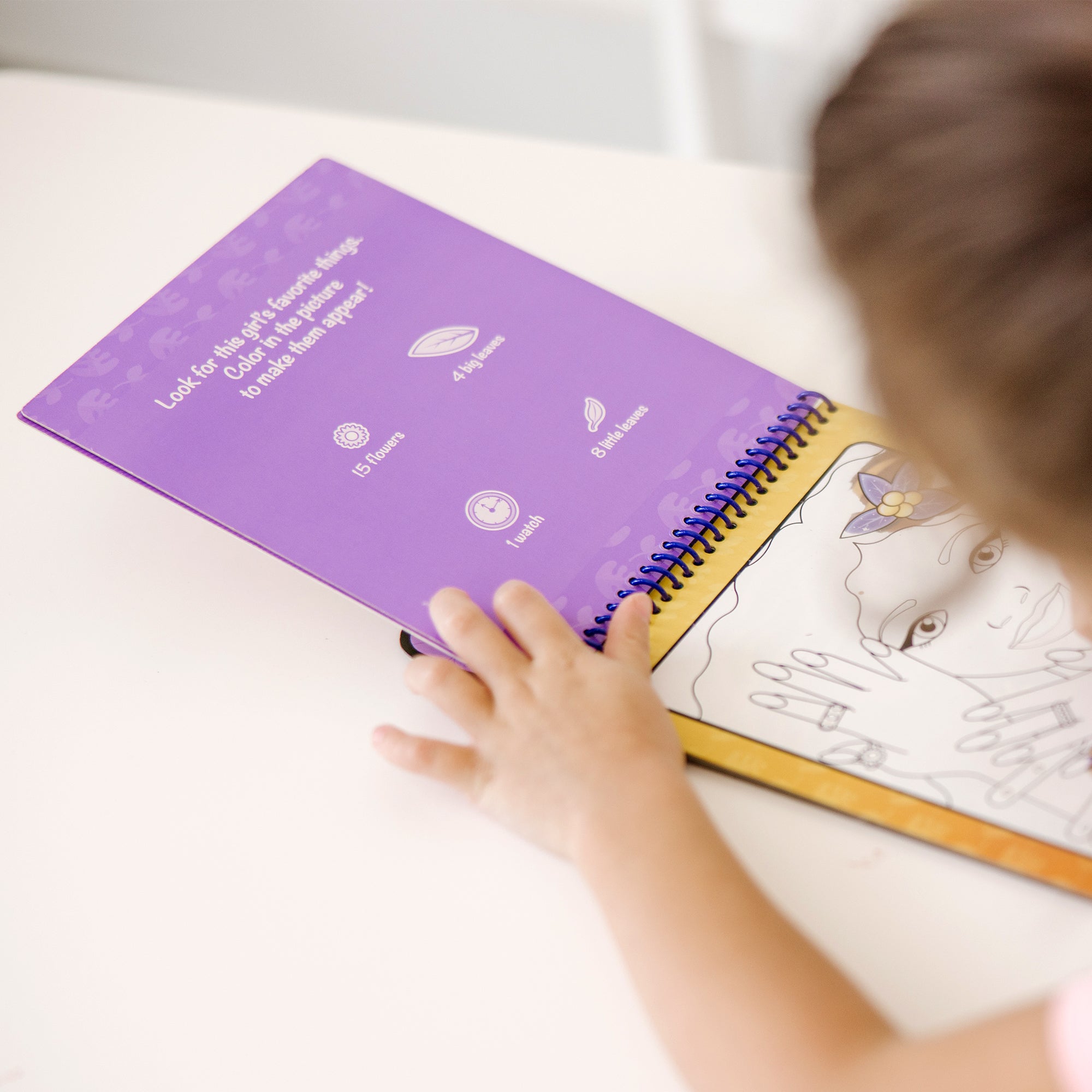 No-mess painting for kids! This exciting paint-with-water coloring book includes four reusable pages and a refillable water pen. Simply fill the pen with water and color in each scene–details and vibrant color appear with every stroke! Then let the pages dry to erase the pictures and fill them out again and again. This makeover-themed book includes four scenes of young ladies with beautiful makeup and accessories to color. plus search-and-find activities for each scene. The chunky-sized water pen is easy for kids to hold and stores neatly right in the front cover. so Water Wow! makes an ideal travel activity book and travel toy. This product is certified by the Forest Stewardship Council. FSC certification ensures that products come from responsibly managed forests that provide environmental. social. and economic benefits. and that forests are protected for future generations. Please note that FSC certification applies to new inventory only (FSC C156584)