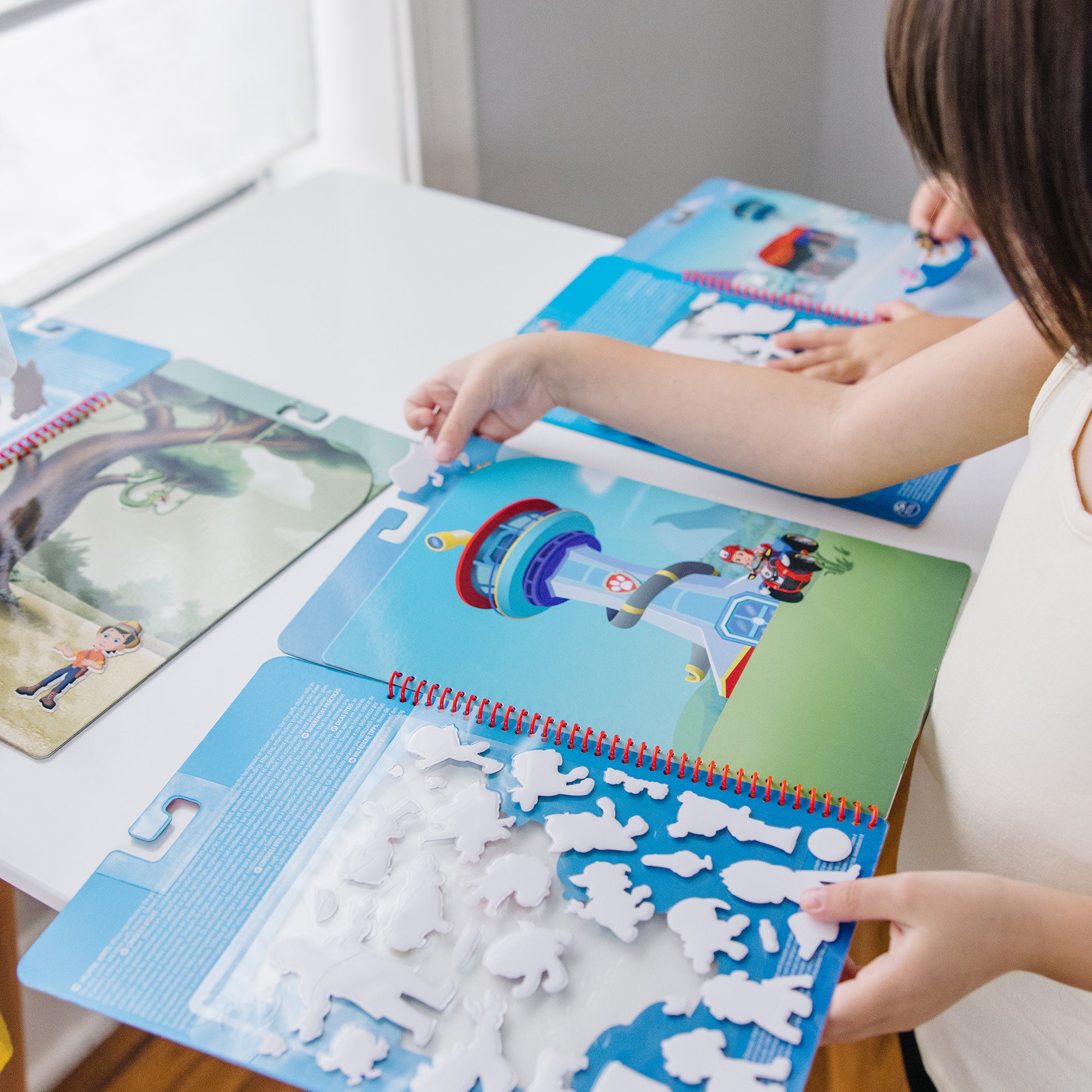 Restickable Puffy Stickers let kids create PAW Patrol adventures again and again! Tell countless stories with these fun dimensional stickers and scenes. Just place and layer the Jake’s Mountain puffy stickers onto the glossy fold-out scenes. Ready for a story change? It’s easy to lift. switch. and rearrange it all to depict whatever pup-filled tale a child can imagine! The built-in sticker collection – 27 reusable puffy stickers in all–offers lots of opportunities for kids to express their creativity while improving fine motor and communication skills. The spiral-bound format is great for travel. too. PAW Patrol is always ready to help. inspiring preschoolers with a blend of teamwork. adventure. and humor as they develop social. emotional. and developmental skills through play.