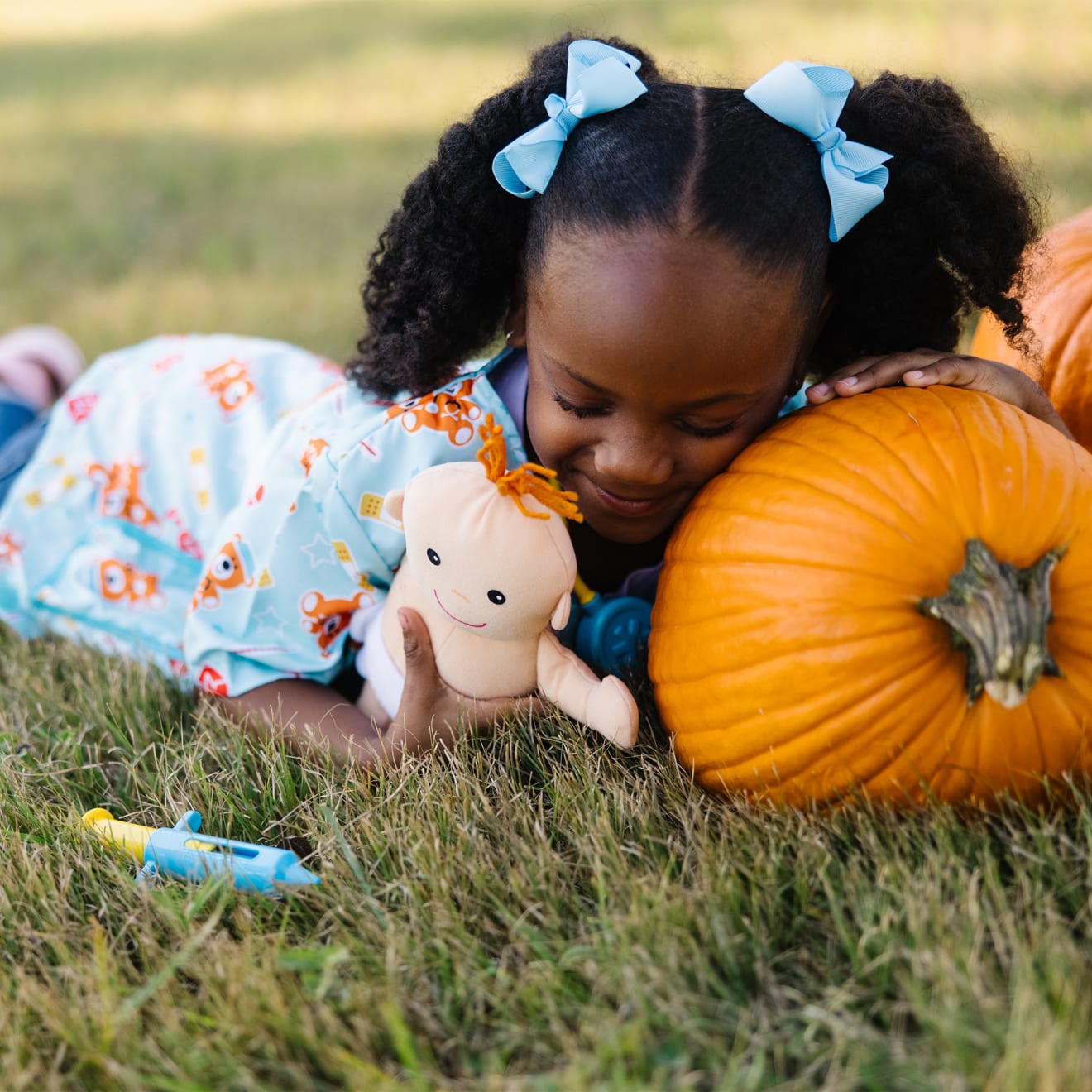 This pediatric-nurse play set has everything little nurses need to take care of a newborn baby–including the baby! Nurses-in-training can slip on the cheerful. gender-neutral uniform (complete with customizable hospital ID tag) then fill the pockets with tools for a pretend-play checkup. The included stethoscope. ear scope. thermometer. and syringe help make sure all is well with the cuddly newborn–or help patch up any imaginary booboos or sniffles. The plush baby doll has a removable cloth diaper with self-stick closures for easy changes before or after the checkup. and a sweet smiling face to encourage emotional connection and communication.