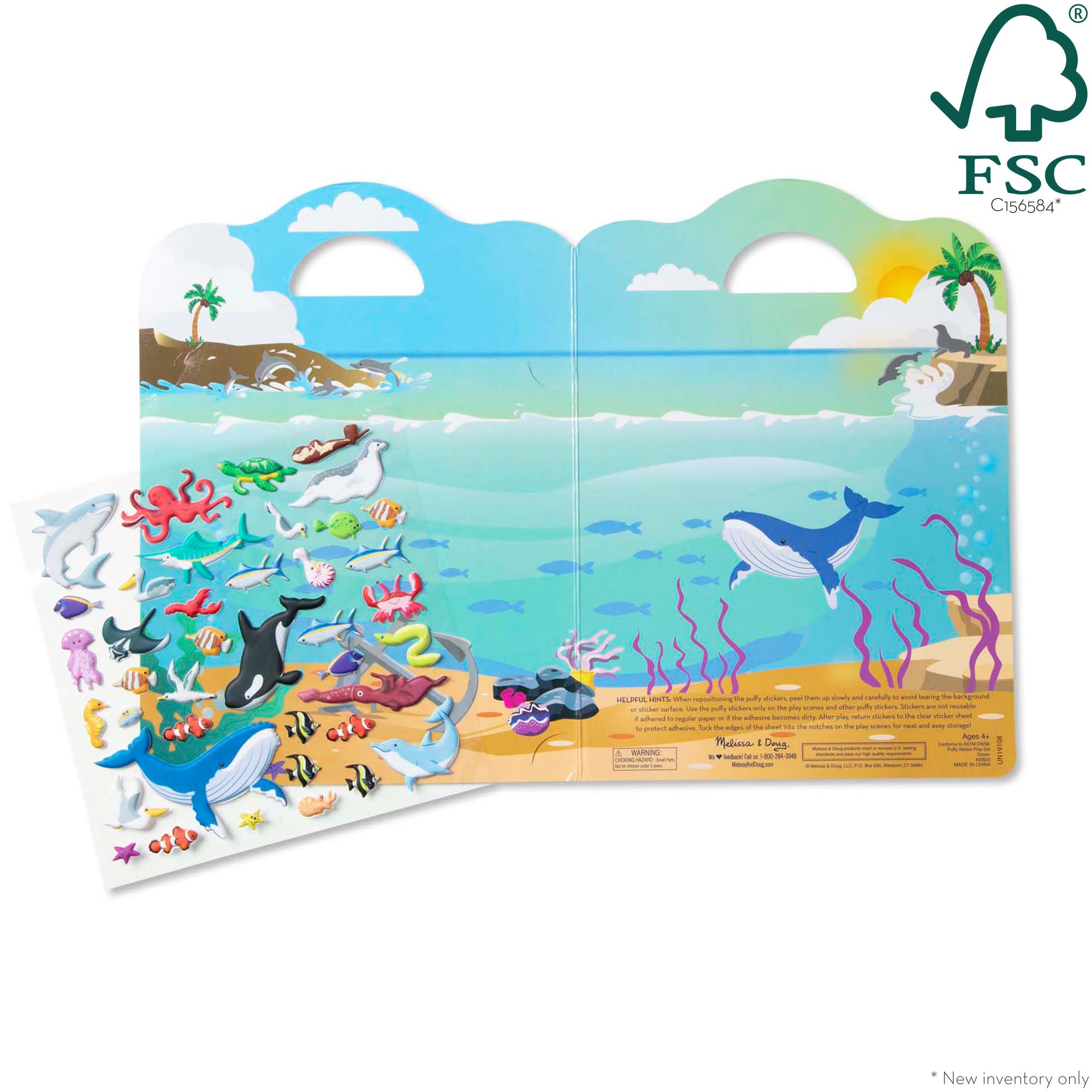 Tell wild adventure puffy-sticker stories with these fun dimensional stickers and scenes! Each set (Safari. Dinosaur. and Ocean) comes with a folding background card and reusable puffy stickers to fill the scenes. Just place and layer the 36 prehistoric creature puffy stickers. 42 safari animal puffy stickers. and 40 sea creature puffy stickers onto the glossy double-sided background boards. Ready for a story change? It’s easy to lift. switch. layer. and rearrange it all to depict whatever wild tale kids can imagine! The play sets offer endless opportunities for kids to express their creativity and have lots of pretend-play fun. all while improving fine motor skills and communication. They’re great for travel. too: The sturdy backgrounds (with built-in handles!) fold to neatly store them all away. This product is certified by the Forest Stewardship Council. FSC certification ensures that products come from responsibly managed forests that provide environmental. social. and economic benefits. and that forests are protected for future generations. Please note that FSC certification applies to new inventory only (FSC C156584)