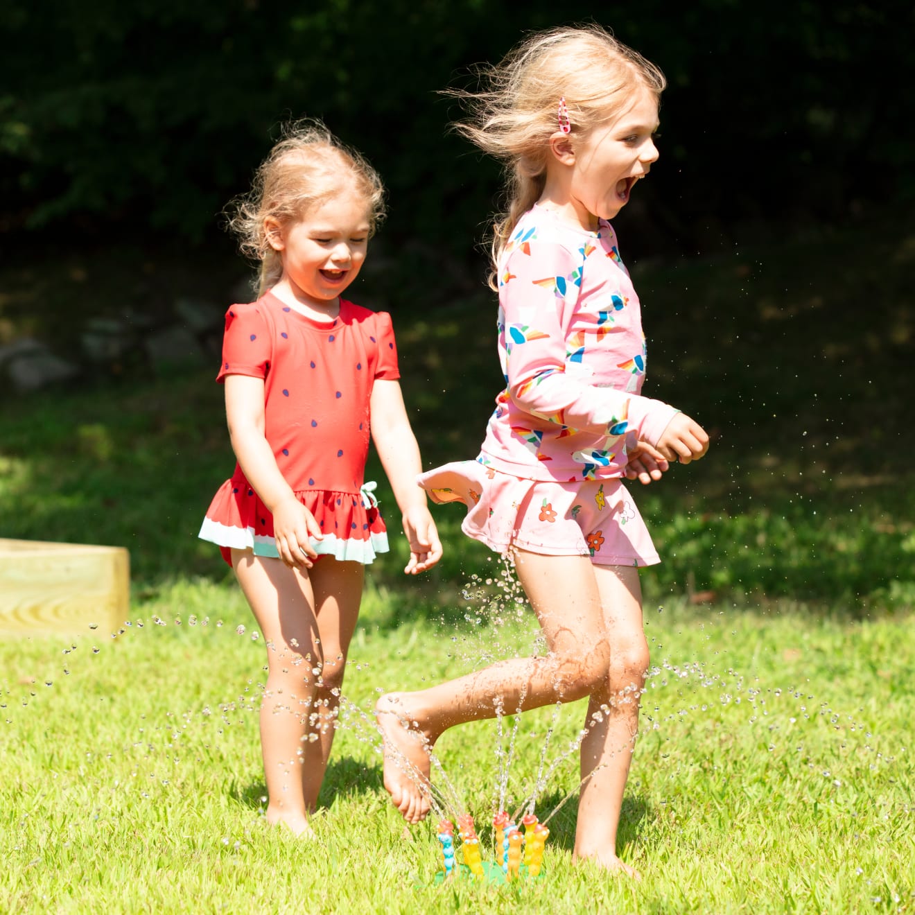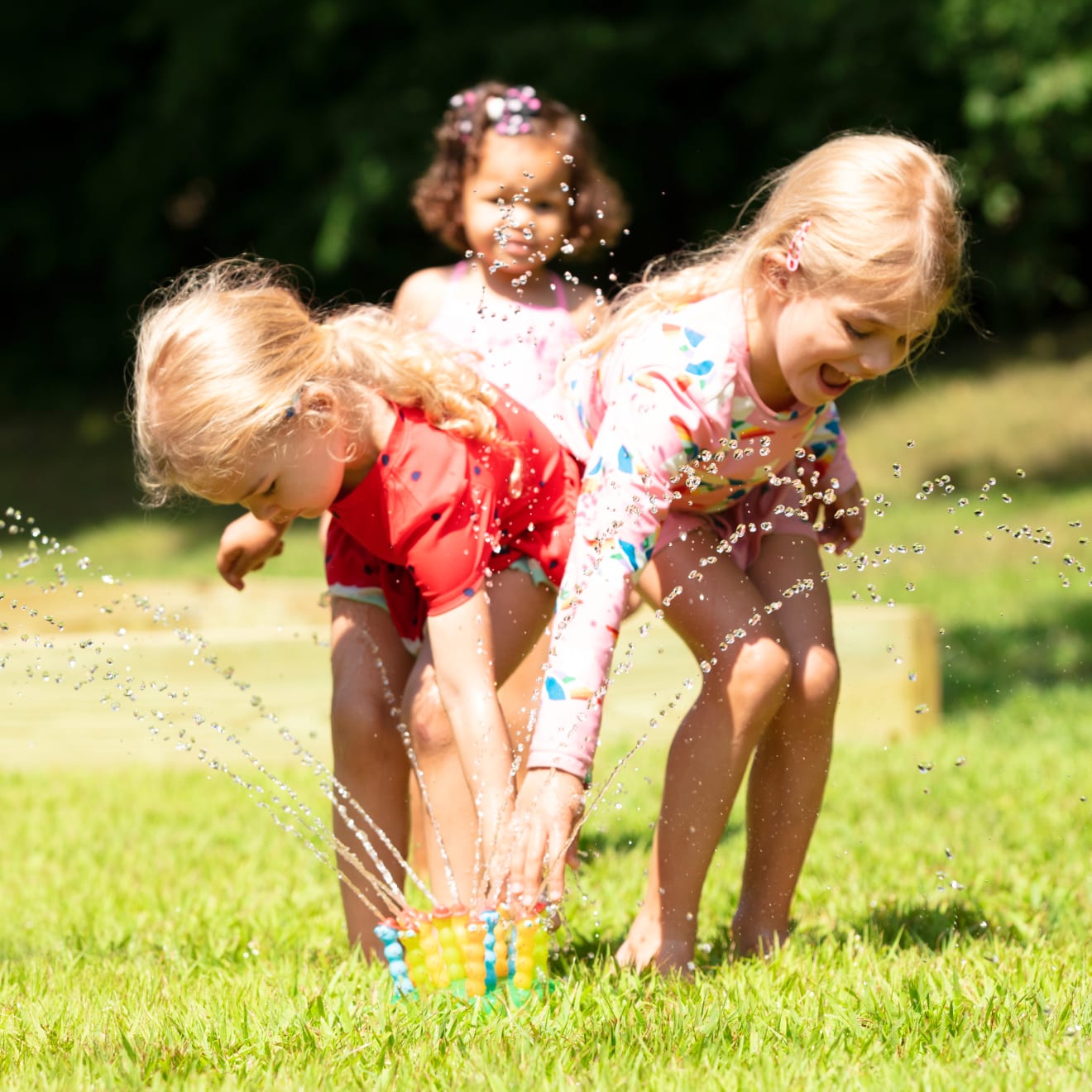 The Splash Patrol’s motto is all for one and fun for all! They always work together–especially when they are squirting you with water! This whimsical outdoor sprinkler is made from durable materials. It attaches easily to a hose for outdoor fun for the whole family. as well an adorable way to water the garden. The sprinkler encourages outdoor active play and helps develop coordination.