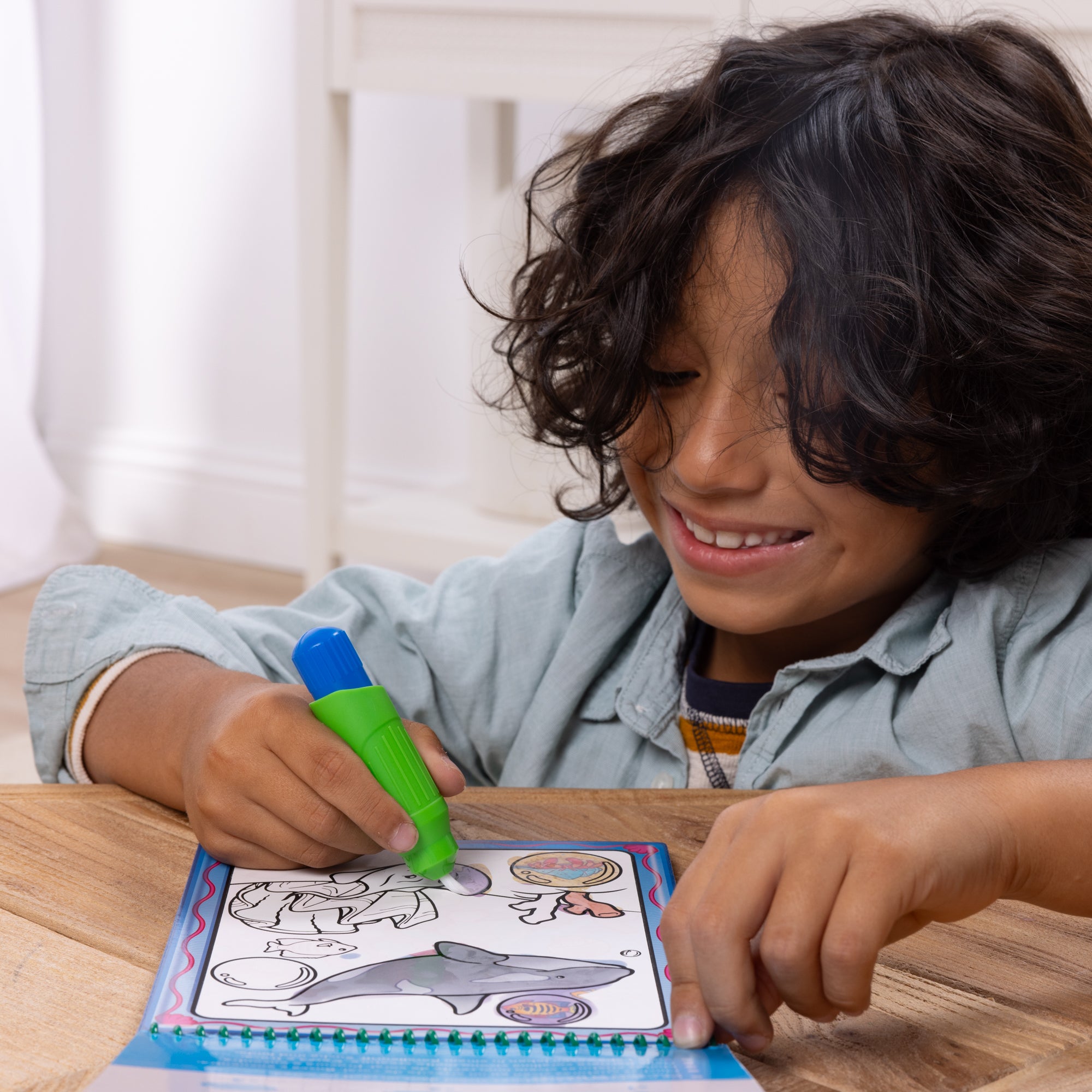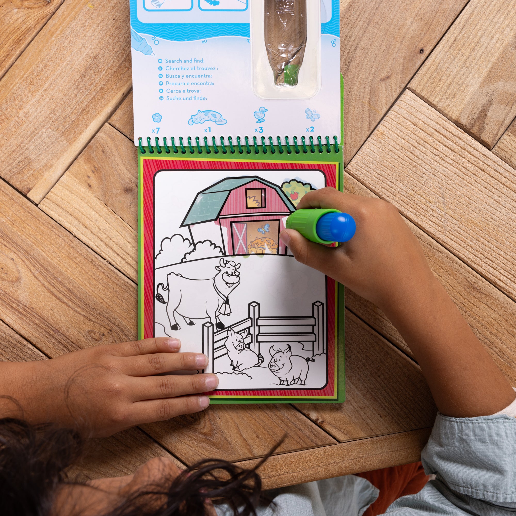Double the fun with this two-pack of exciting and reusable Melissa & Doug Water Wow! activity pads. Each pad (Animal. Vehicles) includes four reusable Water Wow! boards. Pages in the spiral-bound pads are white when dry. and reveal colors. pictures. and shapes when wet. Let the pages dry to erase. then color with water again and again! Search-and-find activities and fun facts are included with each scene. The chunky-sized water pen (one with each pad) is easy to fill. easy for small hands to grasp. and stores in the activity pad ?C making these terrific travel toys.