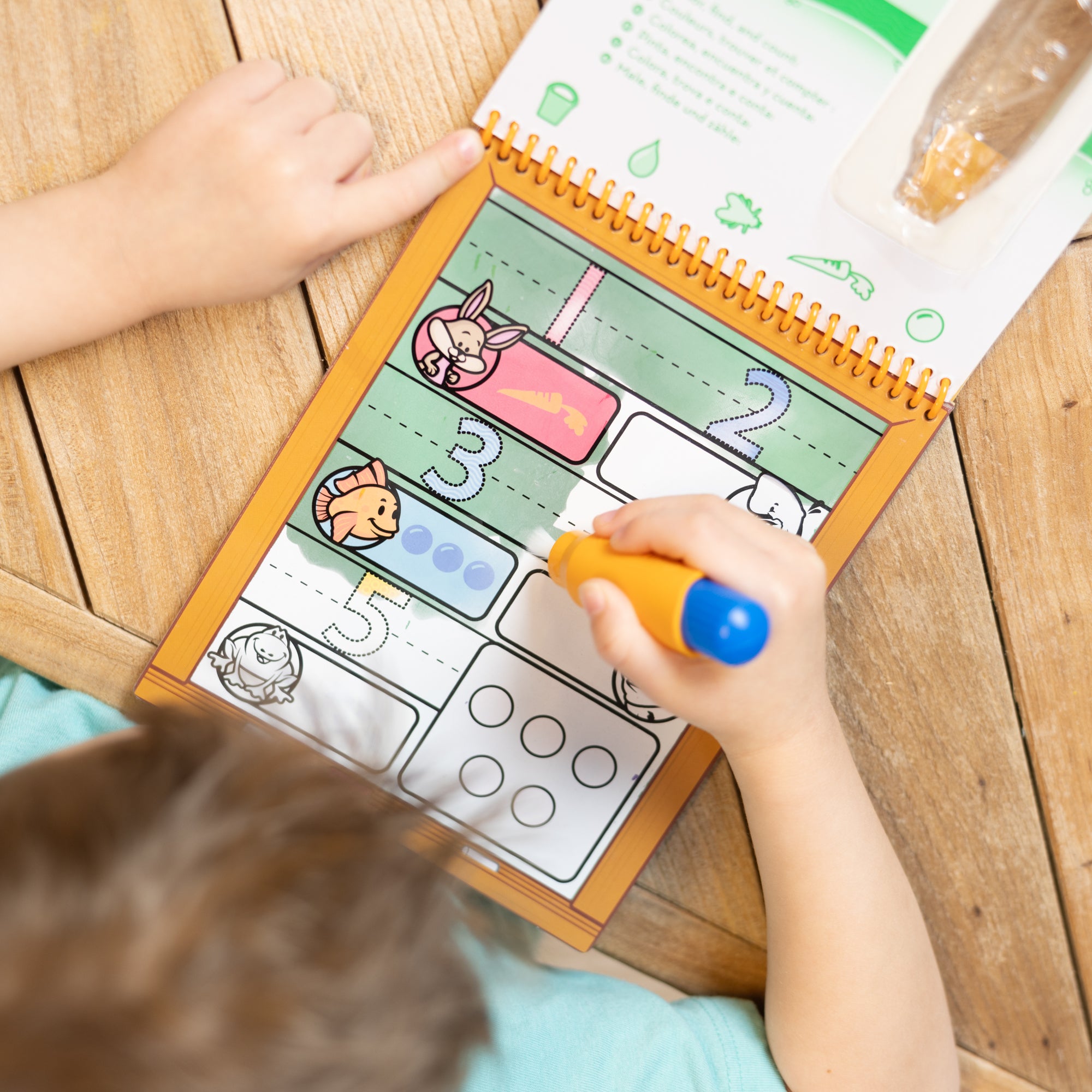 Bring on the fun with this six-pack of exciting and reusable Melissa & Doug Water Wow! activity pads. Each pad (Animals. Vehicles. Alphabet. Numbers. Safari. Under the Sea) includes four reusable Water Wow! boards. Pages in the spiral-bound pads are white when dry. and reveal colors. pictures. and shapes when wet. Let the pages dry to erase. then color with water again and again! Search-and-find activities and fun facts are included with each scene. The chunky-sized water pen (one with each pad) is easy to fill. easy for small hands to grasp. and stores in the activity pad ?C making these terrific travel toys. party favors. and rainy-day activities!
