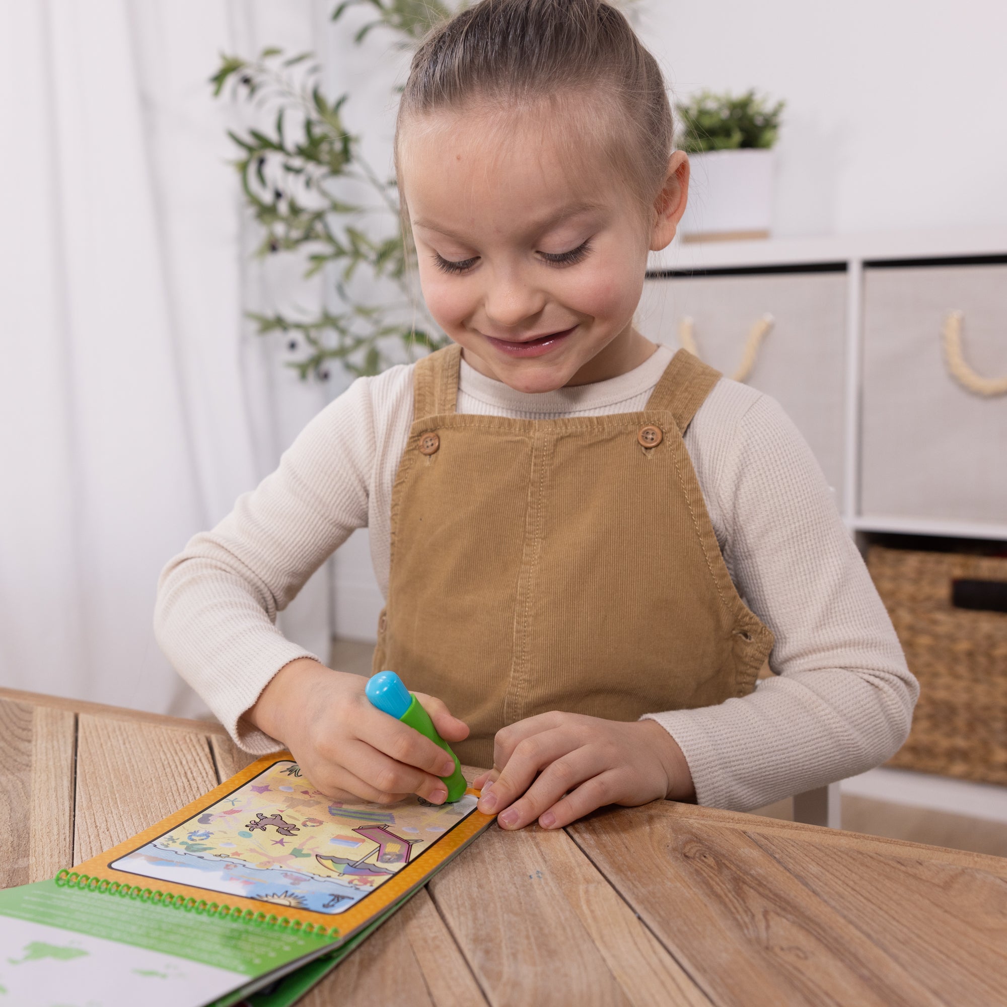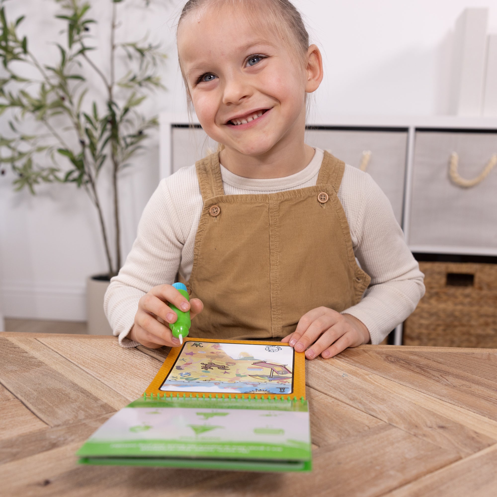 No-mess Water WOW! painting for kids! This exciting paint-with-water coloring book includes four reusable pages and a refillable water pen. Use the pen to color in each scene — details. and vibrant colors appear with every stroke! Let the page dry to erase the pictures and color it in again and again. This seasons-themed spiral-bound book includes four scenes to color (winter. spring. summer. and autumn). and search-and-find activities for each scene. The chunky-sized water pen is easy to hold and stores neatly right in the front cover. making this scented Water WOW! an ideal travel activity book and travel toy for kids!