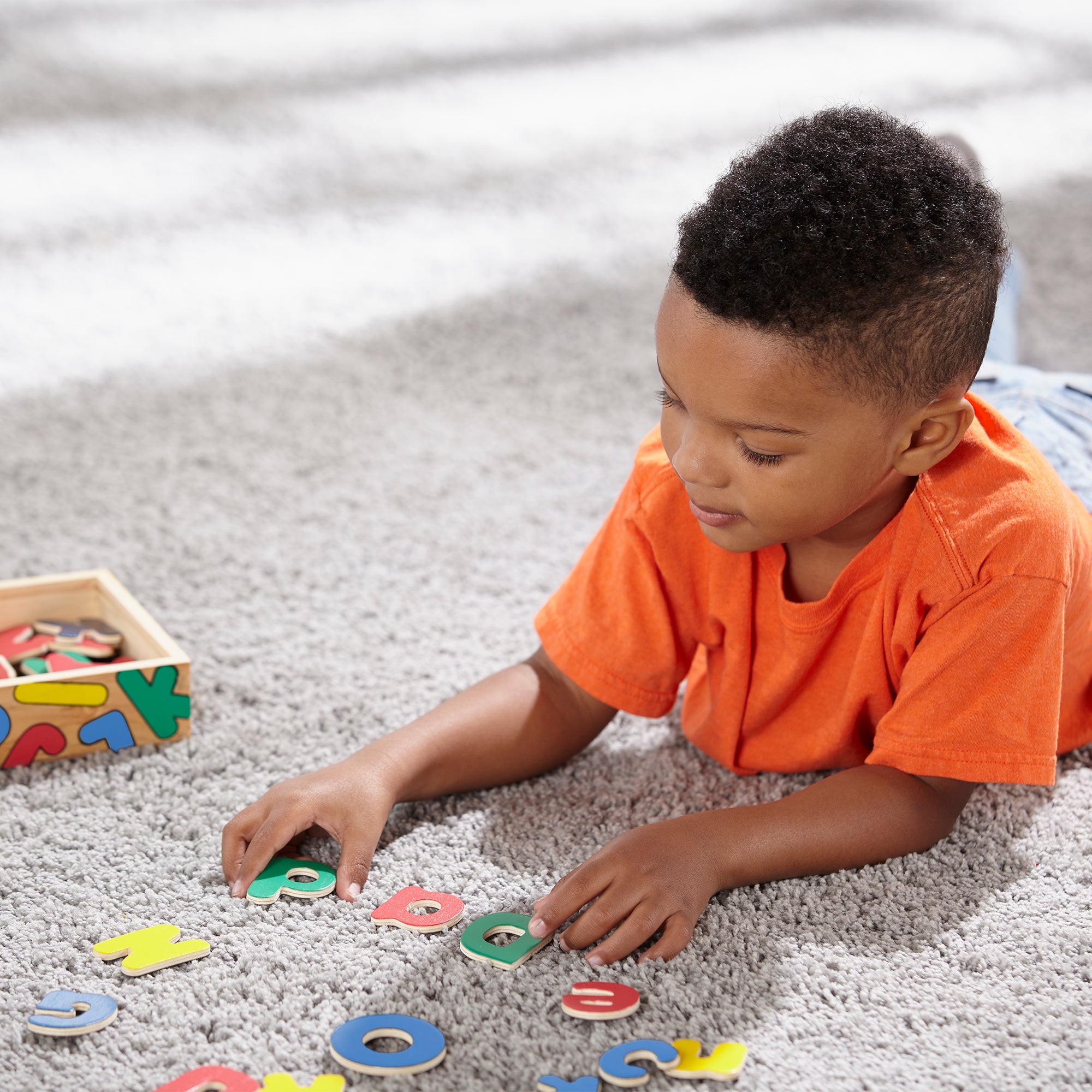 This Magnetic Wooden Alphabet set of magnetic uppercase and lowercase letters offers a colorful jumble of possibilities! The set features 52 brightly colored magnetic letters in a handy wooden case for easy storage and on-the-go play. Ideal for letter recognition. matching. and stenciling. these must-have letters spell learning fun! This alphabet learning set provides parents and older kids with multiple opportunities for engaging children in exciting learning activities. Have kids place the uppercase letters on a magnetic surface as you slowly sing the alphabet song. Once the letters are lined up. sing the song together as you point to the letters. Kids can also close their eyes while you switch a few of the letters. then ask kids where they belong. This alphabet learning magnet set is made from high-quality materials and assembled with precise manufacturing standards. ensuring sturdy construction that holds up against frequent use. The Melissa & Doug Wooden Alphabet Magnets set makes a delightful and educational gift for kids ages three and older for hands-on. screen-free play. This product is certified by the Forest Stewardship Council. FSC certification ensures that products come from responsibly managed forests that provide environmental. social. and economic benefits. and that forests are protected for future generations. Please note that FSC certification applies to new inventory only (FSC C156584)