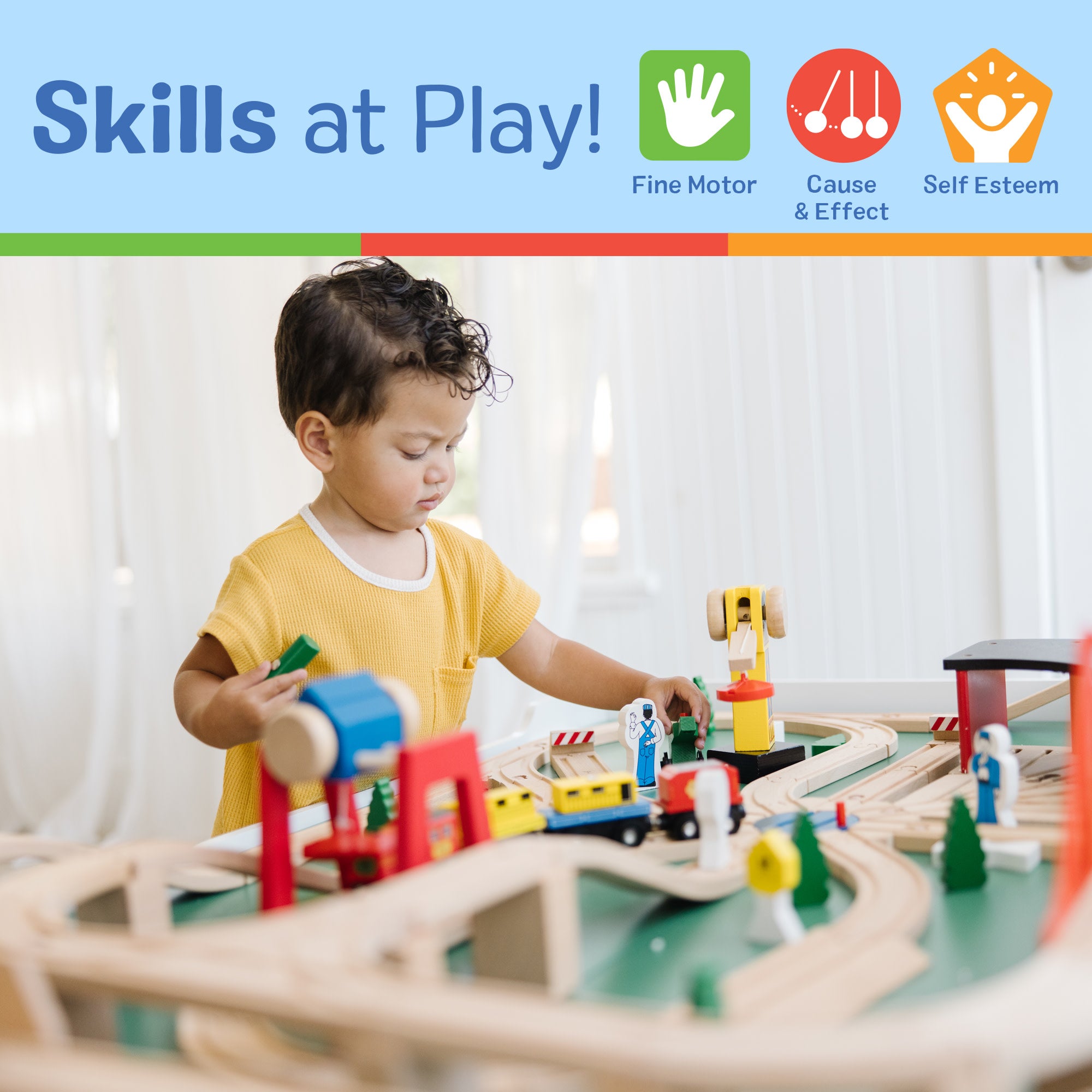 This amazing set includes everything needed for railway fun: a spacious roundhouse engine shed. dozens of track pieces in curves and straights. trees. workers and even traffic signs; multi-piece trains; magnetic-tipped cranes; switches and a T-junction for changing course; suspension bridge. trestle bridge and roundtable. too! A tremendous value! Mix and match it with other train sets–it’s compatible with all popular wooden railway systems.