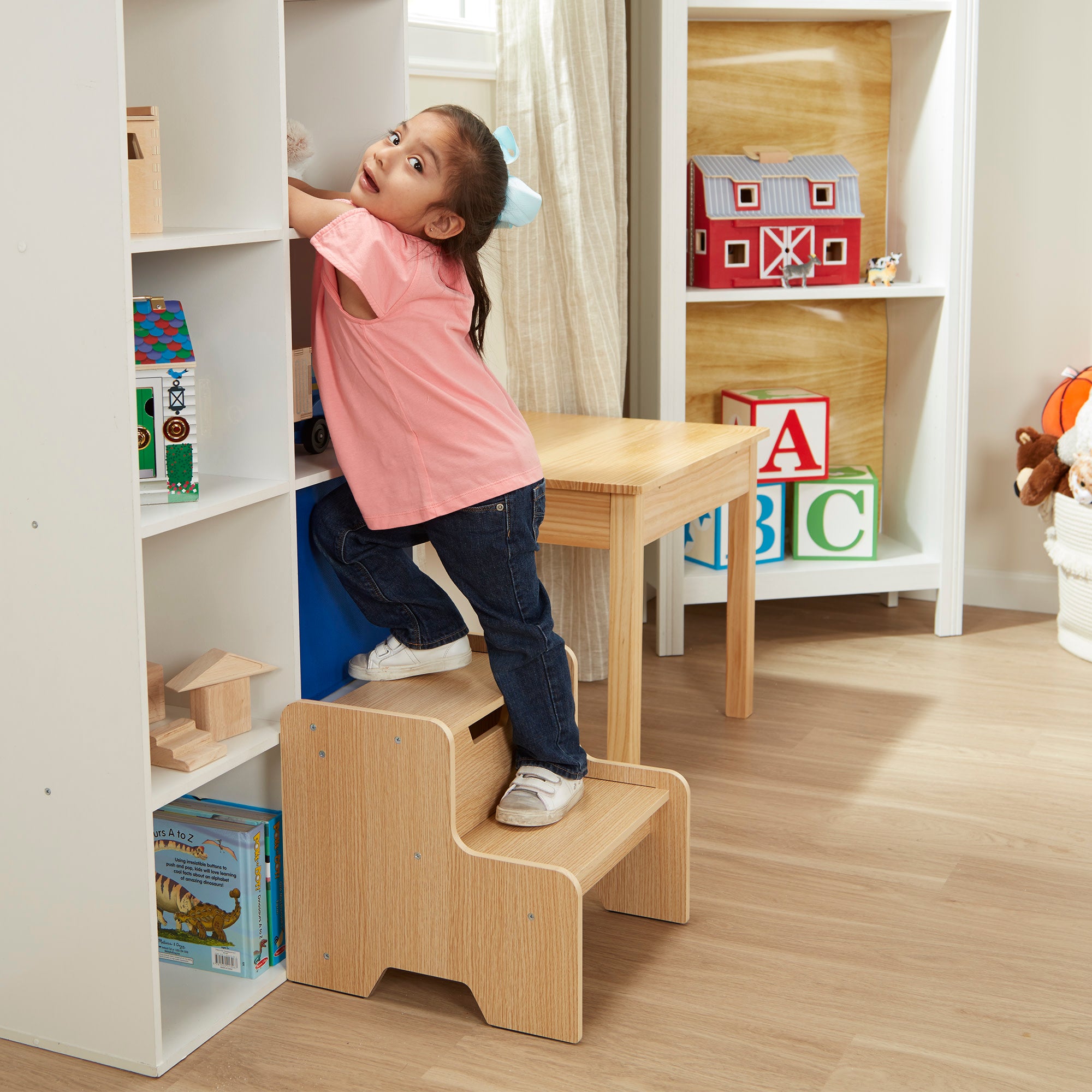 Give kids a leg up with this sturdy wooden two-step step stool! Available in natural. white. and espresso finish to fit with any home d??cor. this stool is great for helping kids up to 100 pounds reach books and toys in the playroom. climb into bed at night. brush their teeth and wash their hands at the bathroom sink. or help out in the kitchen at mealtimes! Easy to assemble with a Philips head screwdriver. not included.